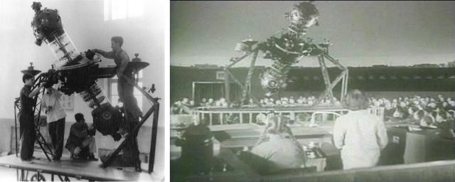 左:學校師生研制的中國首臺大型天象儀(1958年首臺原理樣機);右:中國首臺大型天象儀原理樣機在北京天文館進行演示