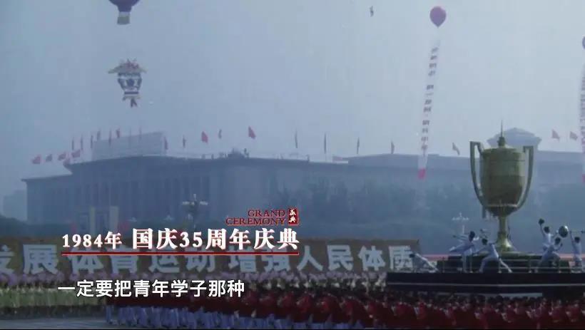 1984年10月1日,國慶35周年慶祝活動,北京工業學院(北京理工大學前身)1400名師生參與群眾游行體育方陣。