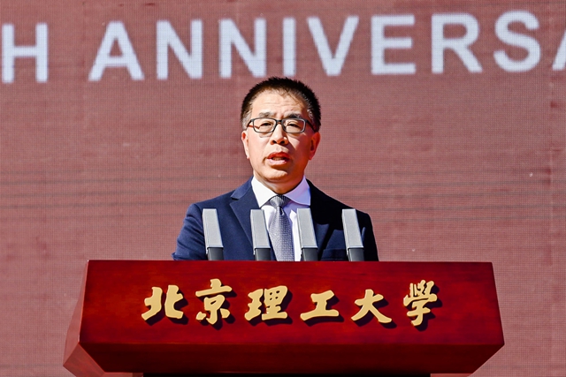 北京理工大學校長張軍代表學校作了題為“特立潮頭,開創未來”的致辭。他談到,北京理工大學在80年的辦學歷程中,堅持聽黨話、跟黨走,傳承“延安根、軍工魂”紅色基因,形成了獨特的精神氣質和文化內核,走出了一條中國共產黨創辦和領導中國特色高等教育的“紅色育人路”,矢志國防、服務戰略的“強軍報國路”,開放包容、交叉融合的“創新發展路”。他表示,在新起點新征程上,學校將按照建設中國特色世界一流大學“三步走”戰略目標,精心培育一流人才,赤誠創造一流貢獻,奮力建設一流大學,朝著建設中國特色世界一流大學的目標邁進,續寫新的輝煌。