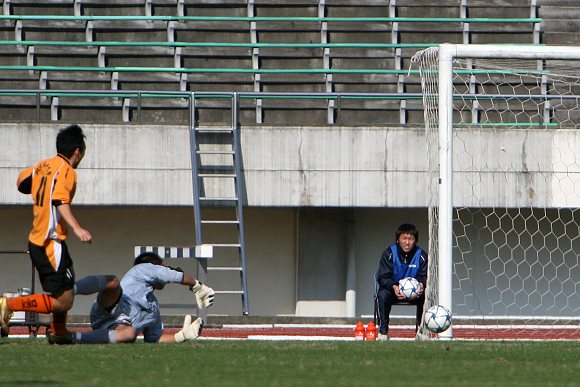 上半時比賽進行到第5分鐘,駒澤大學隊在禁區前沿獲得了一個位置極好的任意球,罰球隊員腳法極刁,一腳將皮球直接射入球門的右上角,率先打開了場上局面。
