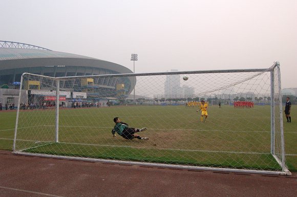 可惜的是我方第二個出場的隊員王續射門太正,被對方守門員撲出,雙方回到了起跑線上,兩輪罰球之后,雙方各進一球。
