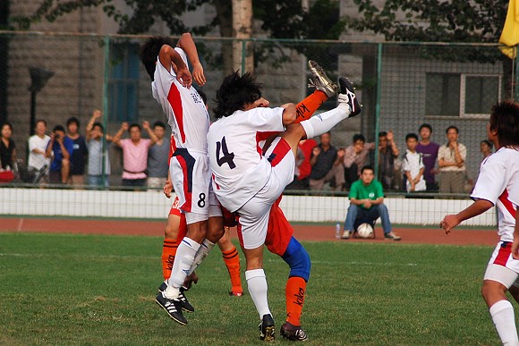 8月26日下午4點(diǎn),我校足球隊(duì)迎來(lái)了2006全國(guó)足球乙級(jí)聯(lián)賽下半程的第二場(chǎng)比賽,在主場(chǎng)迎戰(zhàn)目前排名北方賽區(qū)第四的哈藥毅騰隊(duì),最終對(duì)手在裁判的“關(guān)照”下與我方以0:0戰(zhàn)平,雙方各取1分。在今年上半程的首場(chǎng)比賽中,我校足球隊(duì)在哈爾濱客場(chǎng)曾以2:0戰(zhàn)勝對(duì)手(點(diǎn)擊進(jìn)入相關(guān)鏈接),而對(duì)手踢法粗野,觀眾缺乏文明觀賽現(xiàn)象(點(diǎn)擊進(jìn)入相關(guān)鏈接)也曾引起媒體界的軒然大波。此場(chǎng)比賽之前,哈藥毅滕隊(duì)以5勝3平2負(fù)共積18分的成績(jī)名列北方賽區(qū)第四位,而我校足球隊(duì)在少賽一輪的情況下,以6勝2平1負(fù)積20分的成績(jī)名列北方賽區(qū)榜首,因此,賽前金志揚(yáng)總教練要求隊(duì)員對(duì)此場(chǎng)比賽志在必得。