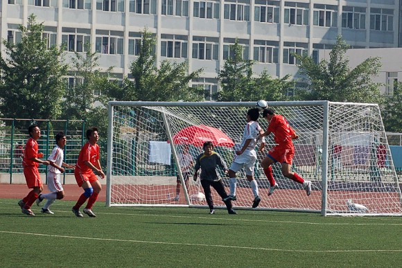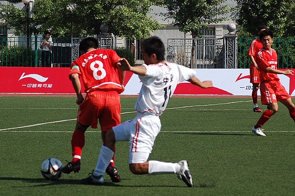 6月28日,李寧杯第六屆中國大學生足球聯賽決賽階段的比賽在遼寧沈陽正式開戰,我校足球隊(著紅色隊服)在小組賽中首戰面對青島大學足球隊。由于我校足球隊曾連續獲得三屆聯賽冠軍,今年又首次參加全國職業足球乙級聯賽且戰績輝煌,使得各隊都非常重視與我隊的比賽。