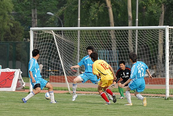 昨天下午,北理工在北航體育場迎來了第六輪客場與北航足球隊的比賽,身穿黃色球服的北理工隊的精神面貌和拼勁與前幾場比賽完全變了個樣子,繼上半場以1:0領先之后,下半場再入4球,最終以5:0戰勝了北航足球隊,展示了其真正實力,也為本周末中甲聯賽北理工一隊主場迎戰江蘇舜天開了一個碰頭彩!
