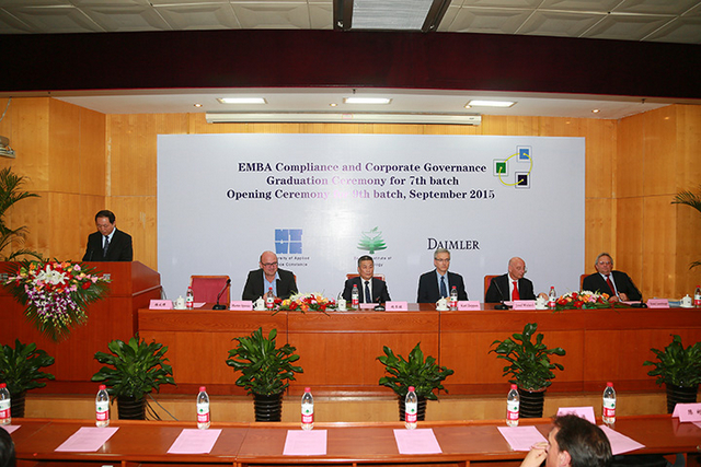 2015年9月2日下午, 北京理工大學(xué)與德國康斯坦斯應(yīng)用科學(xué)大學(xué)合作為國際著名奔馳汽車生產(chǎn)商戴姆勒公司舉辦的EMBA項(xiàng)目第七期畢業(yè)典禮暨第九期新生開學(xué)典禮在我校國際教育交流大廈三層報告廳隆重舉行。出席此次開學(xué)典禮的嘉賓有:北京理工大學(xué)常務(wù)副書記趙長祿教授、戴姆勒大中華區(qū)投資有限公司首席財務(wù)官Karl Deppen先生、戴姆勒在華合資企業(yè)人力資源支持及職業(yè)教育項(xiàng)目總監(jiān)Martin Spicale先生、康斯坦斯應(yīng)用科學(xué)大學(xué)首席教授Josef Wieland博士、康斯坦斯應(yīng)用科學(xué)大學(xué)繼續(xù)教育部主任Roland Luxemburger先生、北京奔馳汽車有限公司培訓(xùn)中心總經(jīng)理陳彬先生、我校國際交流合作處處長唐水源教授、國際教育學(xué)院梅文博院長、蔣志湘副院長。典禮由梅文博院長主持。