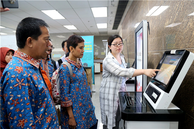 會談結束后,墨邱布安南大學代表團參觀了我校圖書館,親自體驗了系統檢索功能,并對我校圖書館方便的借還書系統操作表示贊揚。