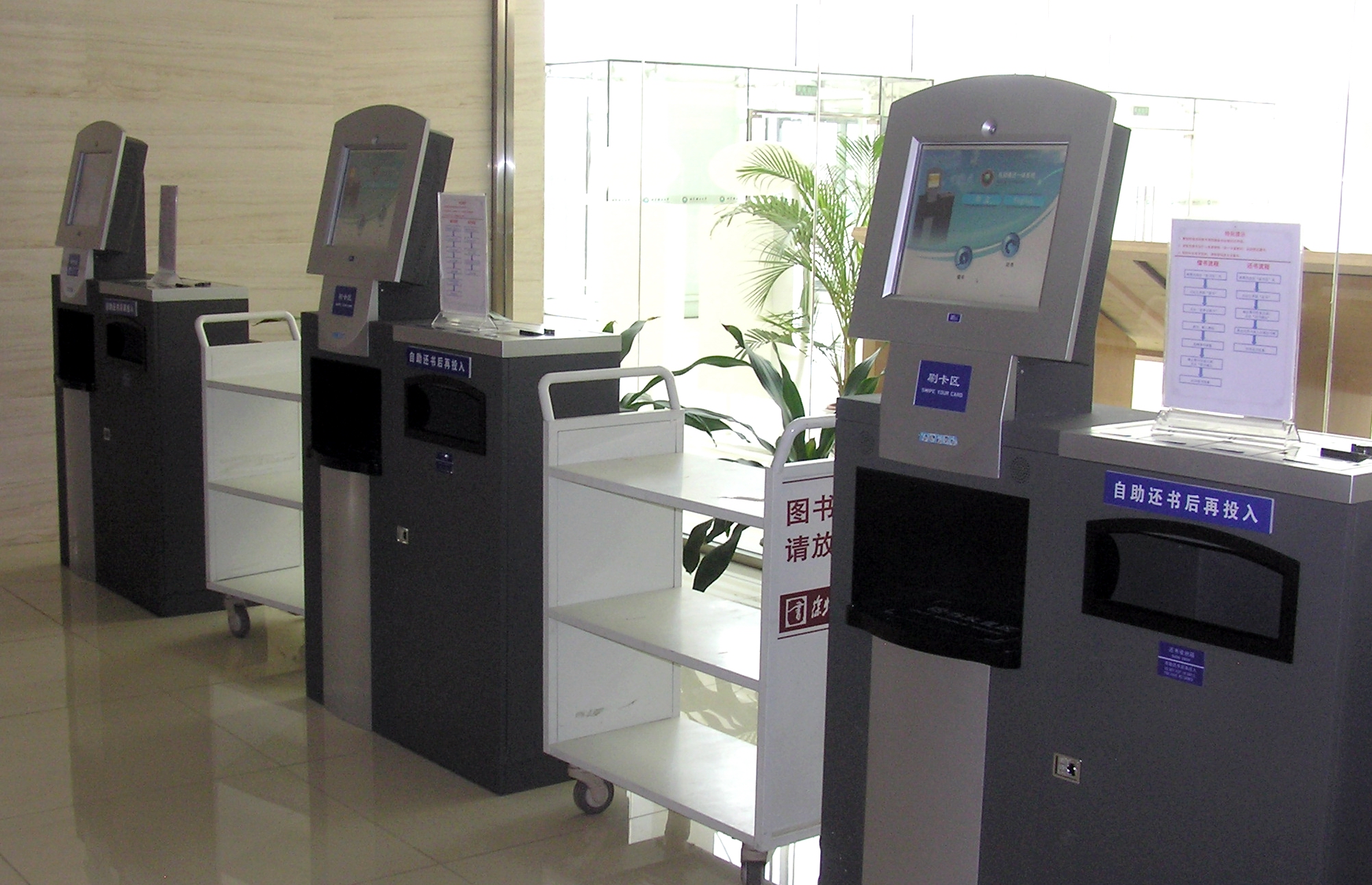 日前,我校圖書館建成圖書自助借還系統。依托該系統,讀者不必通過圖書館員即可自己進行借書、還書操作,不必進入圖書館即可24小時還書。