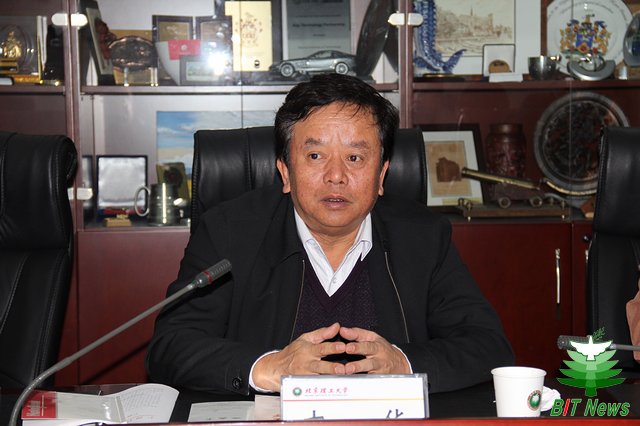 胡海巖校長對束華一行在兩會期間的特別來訪表示歡迎。他指出,近年來,北京理工大學利用劃歸工業和信息化部的轉型機遇,積極在兩化融合進程中發揮支撐和服務作用,由于學科覆蓋面寬、學科基礎好,學校自身已具備了為兩化融合服務的條件。