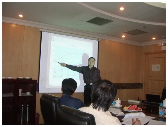 校長助理龐思勤在向專家組匯報項目的總體建設情況。