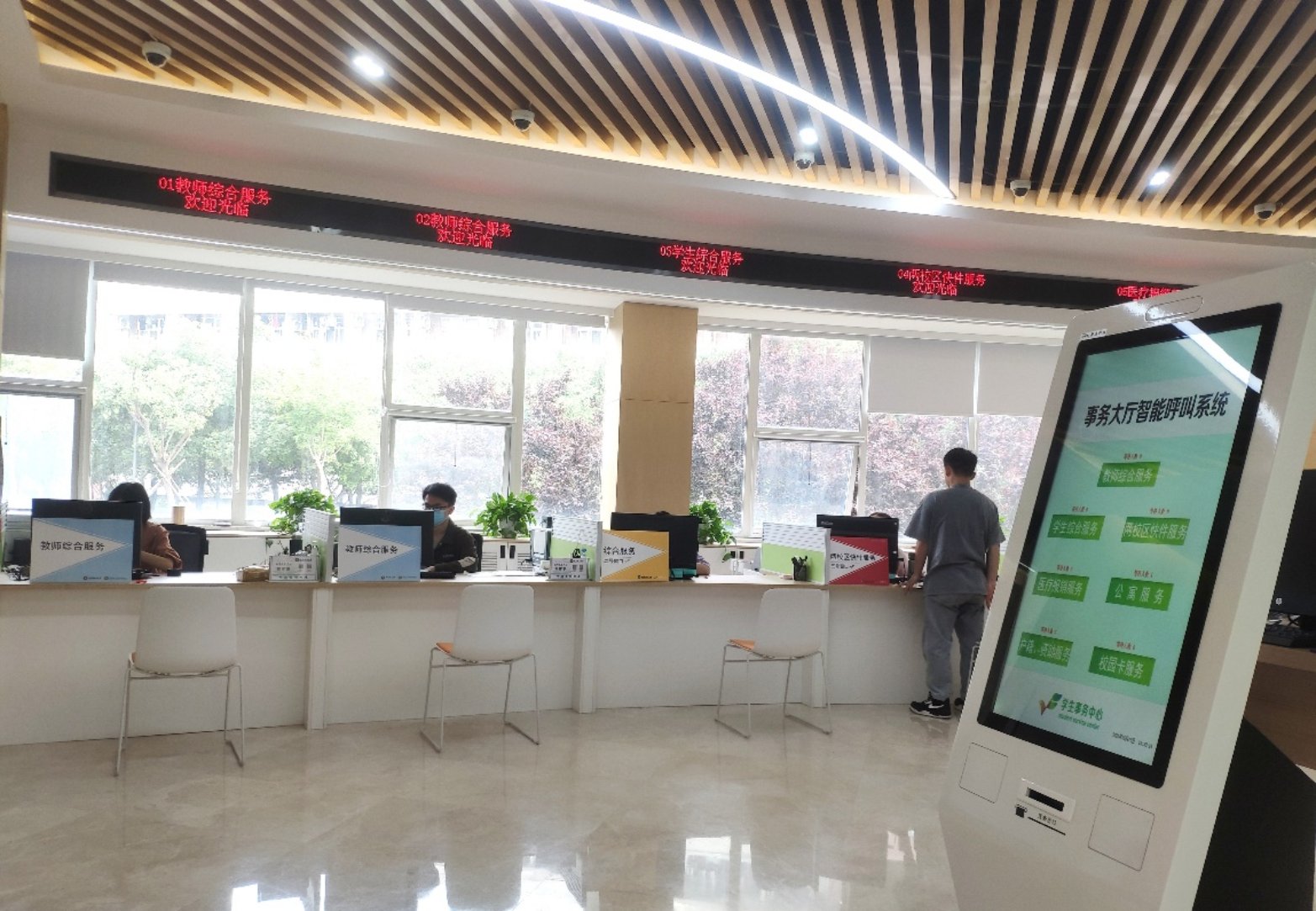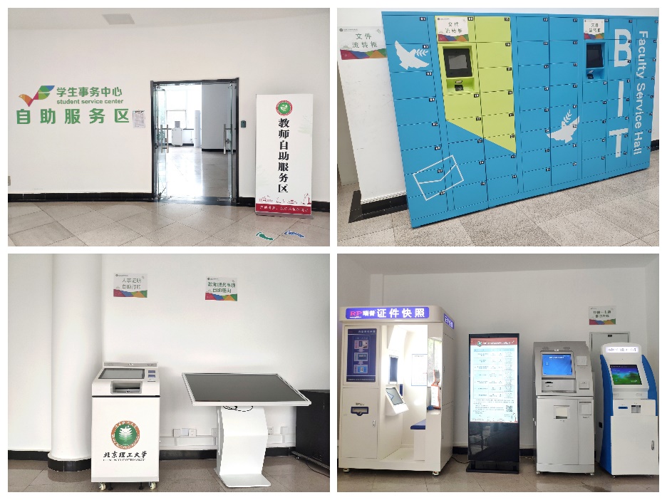 4.自助服務(wù)區(qū):目前有智能文件流轉(zhuǎn)柜、觸摸查詢一體機(jī)、自助證明打印機(jī)、自助拍照機(jī)、校園一卡通自助終端等多臺(tái)自助服務(wù)設(shè)備,可辦理與各部門無(wú)接觸式文件流轉(zhuǎn)、教師服務(wù)事項(xiàng)自助查詢、人事證明自助打印、一體化照片采集、校園一卡通自助補(bǔ)卡等多項(xiàng)自助服務(wù)。