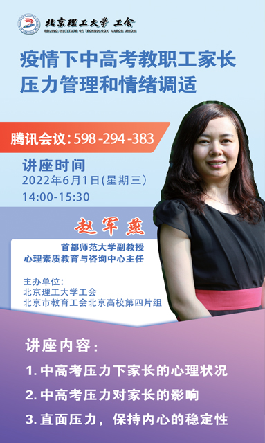 講座預告?>?疫情下中高考教職工家長壓力管理和情緒調適