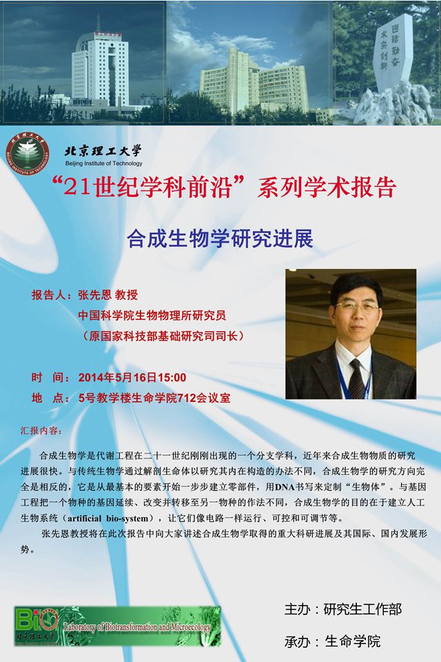 “21世紀學科前沿”系列學術報告——張先恩教授“合成生物學研究進展”講座