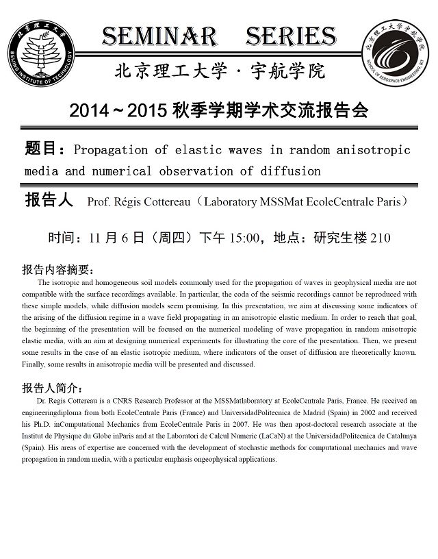 講座預告?>?宇航學院11月6日學術報告預告