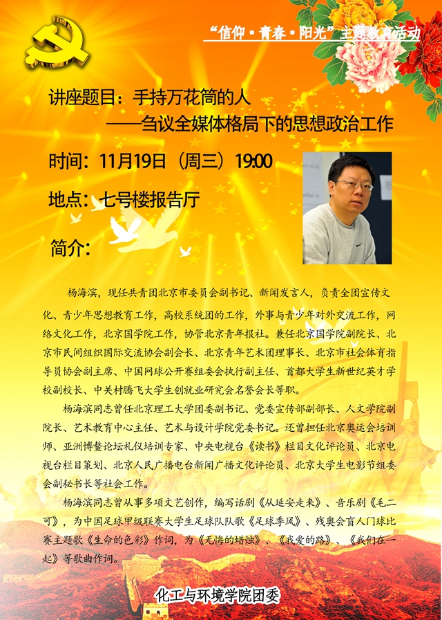 關于北理工化工與環境學院舉辦信仰·青春·陽光主題教育講座的通知