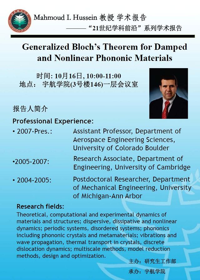 宇航學(xué)院10月16日學(xué)術(shù)報(bào)告預(yù)告