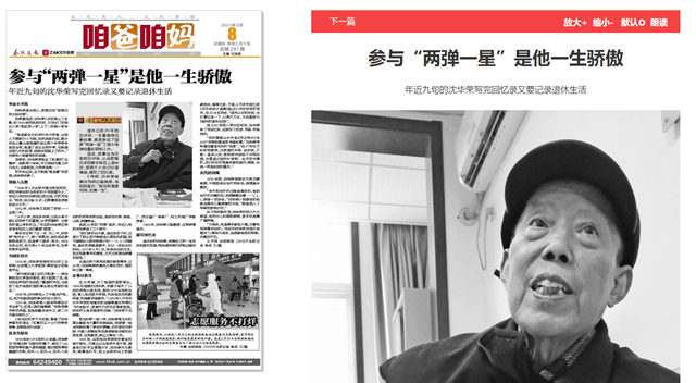 說起20年的“兩彈”經歷,年近九旬的沈華榮說了三個細節: