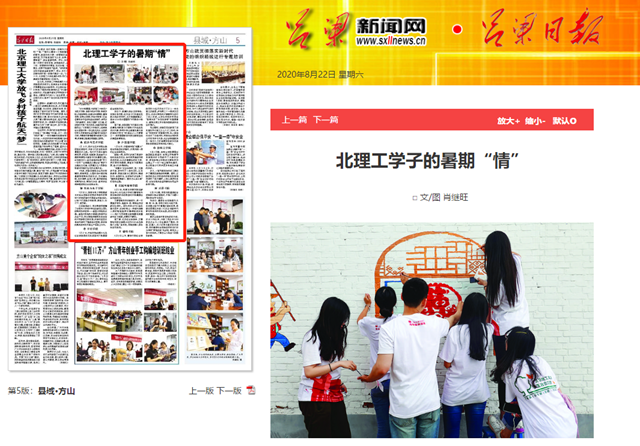 “2020年暑期,北京理工大學設計與藝術學院、信息與電子學院、宇航學院、外國語學院、機械與車輛學院、睿信書院、徐特立學院、求是書院等120余名青年學子組成的社會實踐團,共同以‘時代新青年 共筑中國夢’為主題,在胡堡村開展了形式多樣、豐富多彩的實踐活動?!北本├砉ご髮W駐方山縣麻地會鄉胡堡村第一書記吳克友說,這些青年學子用青春的足跡丈量偉大祖國之遼闊,用青春的激情感受民族復興之脈搏,用青春之智慧實現強國之夢想。