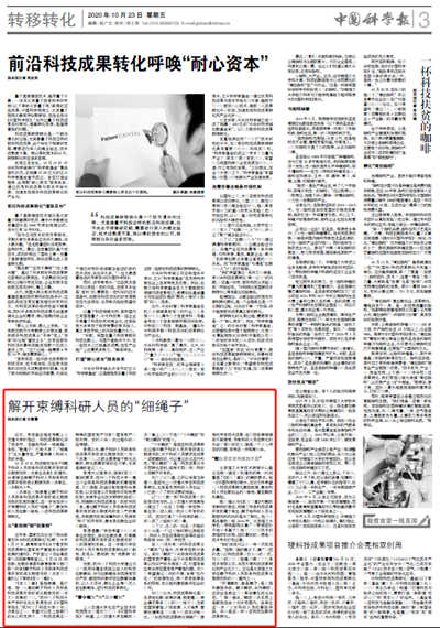 近年來,國家先后出臺了相關政策文件為科技成果轉化“松綁”。今年1月17日,教育部發布《關于落實科技成果轉化國有資產管理有關授權政策的通知》,產權登記事項由高校審核后報教育部登記。5月18日,科技部、發展改革委和教育部等9部門聯合印發《賦予科研人員職務科技成果所有權或長期使用權試點實施方案》(以下簡稱《實施方案》)。