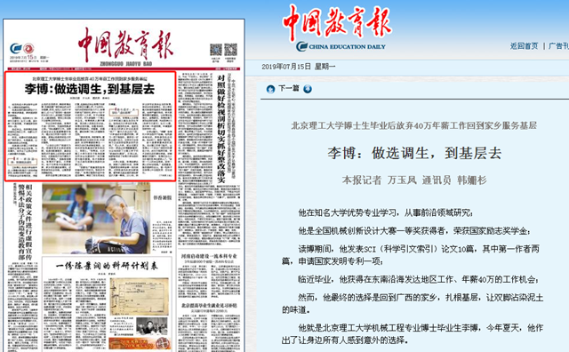 他就是北京理工大學機械工程專業博士畢業生李博,今年夏天,他作出了讓身邊所有人感到意外的選擇。