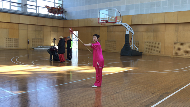 趙鈴在錄制槍術(shù)教學(xué)視頻