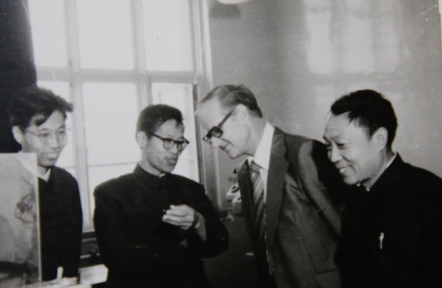 70年代,張忠廉向外國專家介紹光電陰極制作檢控儀