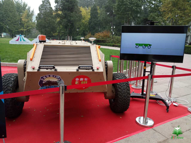北京理工大學坦克傳動國防科技重點實驗室和無人車技術工業和信息化部重點實驗室自主研制的搖臂懸架輪式無人平臺采用搖臂懸架系統、多能源輸出動力單元、分布式驅動技術,可以獲得超強的越野機動性能,能夠大幅擴展無人車作戰半徑,適應新的作戰使命,是面向未來戰爭需求的一種新型輪式無人平臺。平臺參加了陸軍裝備部舉辦的“跨越險阻2016”地面無人系統挑戰賽,取得了佳績。