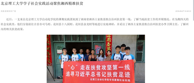 原文標題:北京理工大學學子社會實踐活動聚焦湘西精準扶貧