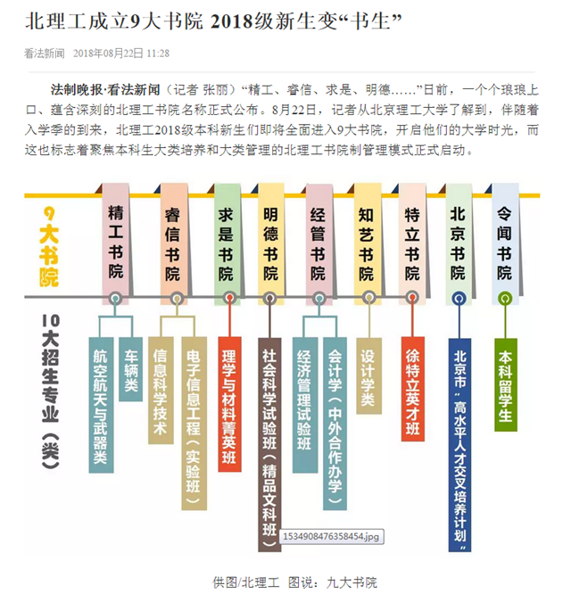 【法制晚報·看法新聞】北理工成立9大書院 2018級新生變“書生”
