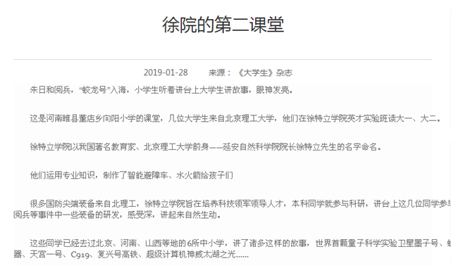 很多國防尖端裝備來自北理工,徐特立學院旨在培養科技領軍領導人才,本科同學就參與科研,講臺上這幾位同學參與過朱日和閱兵等事件中一些裝備的研發,感受深,講起來自然生動。