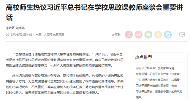【人民網】高校師生熱議習近平總書記在學校思政課教師座談會重要講話