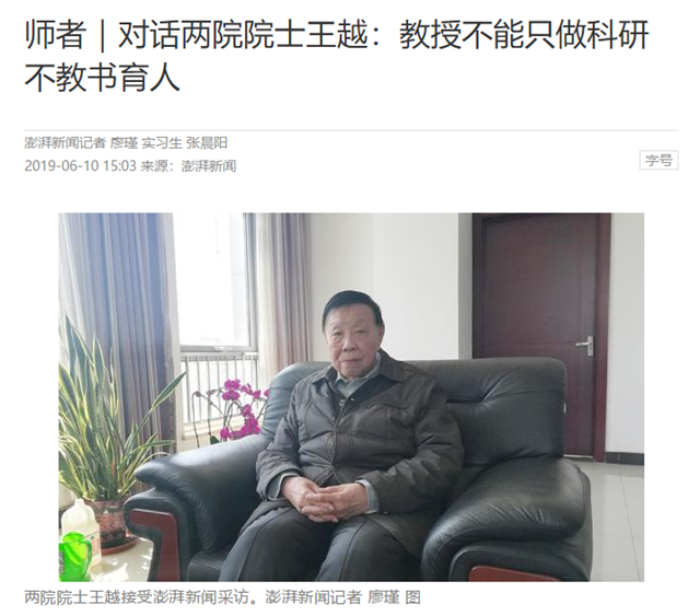 【澎湃新聞】對話兩院院士王越:教授不能只做科研不教書育人