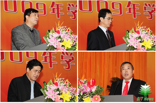 會上,侯光明宣讀了《北京理工大學2008-2009學年國家獎學金、國家勵志獎學金獲得者名單》;趙顯利宣讀了《2008-2009學年徐特立獎學金、T-more 創新學生獎等社會捐助獎學金獲得者名單》;孫逢春宣讀了《關于表彰2008-2009學年優秀學生標兵、優秀學生、優秀學生干部、先進班集體、優良學風班、優良學風宿舍、黨日活動優秀支部和紅色“1+1”活動優秀支部的決定》。