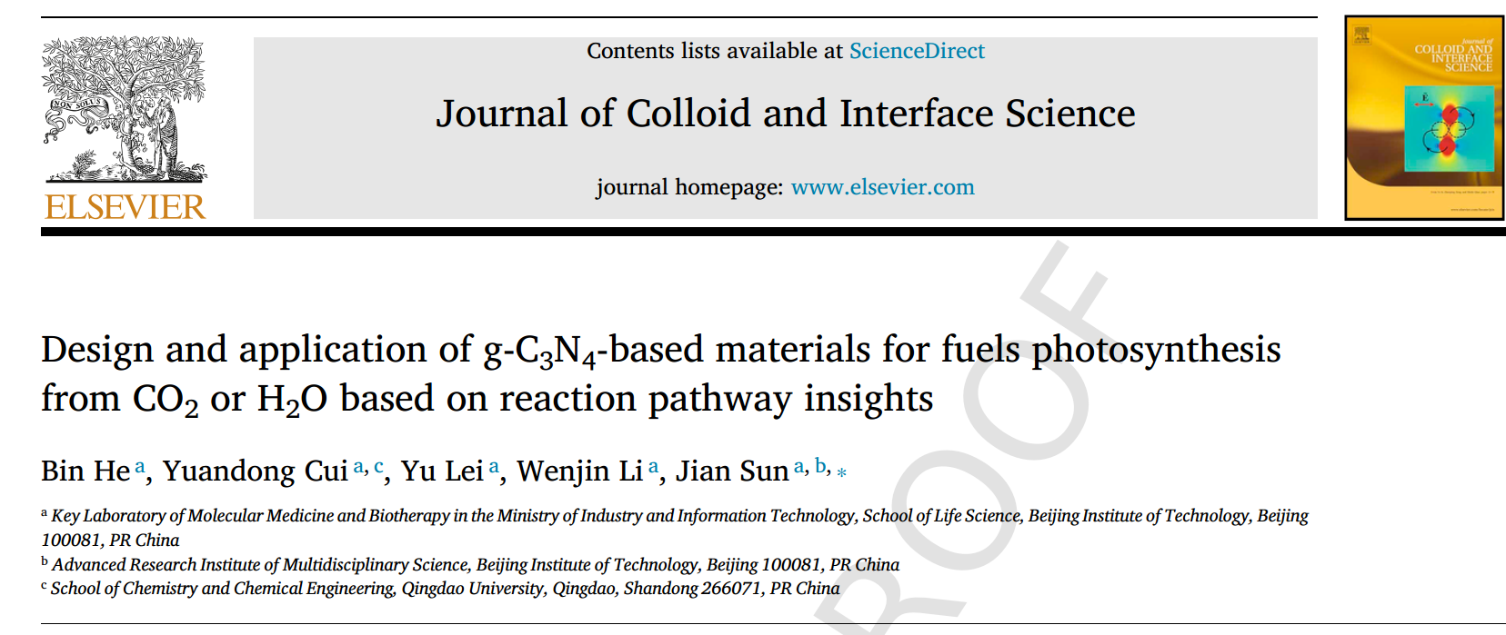 近日,北京理工大學生命學院綠色生物制造團隊在石墨相氮化碳(g-C3N4)光化學材料方面發表綜述文章,相關成果以“Design and Application of g-C3N4-based Materials for Fuels Photosynthesis from CO2 or H2O Based on Reaction Pathway Insights”為題發表于頂級期刊《Journal of Colloid and Interface Science》(影響因子9.965),北京理工大學生命學院2019級博士生賀濱為第一作者,通訊作者為孫劍教授。