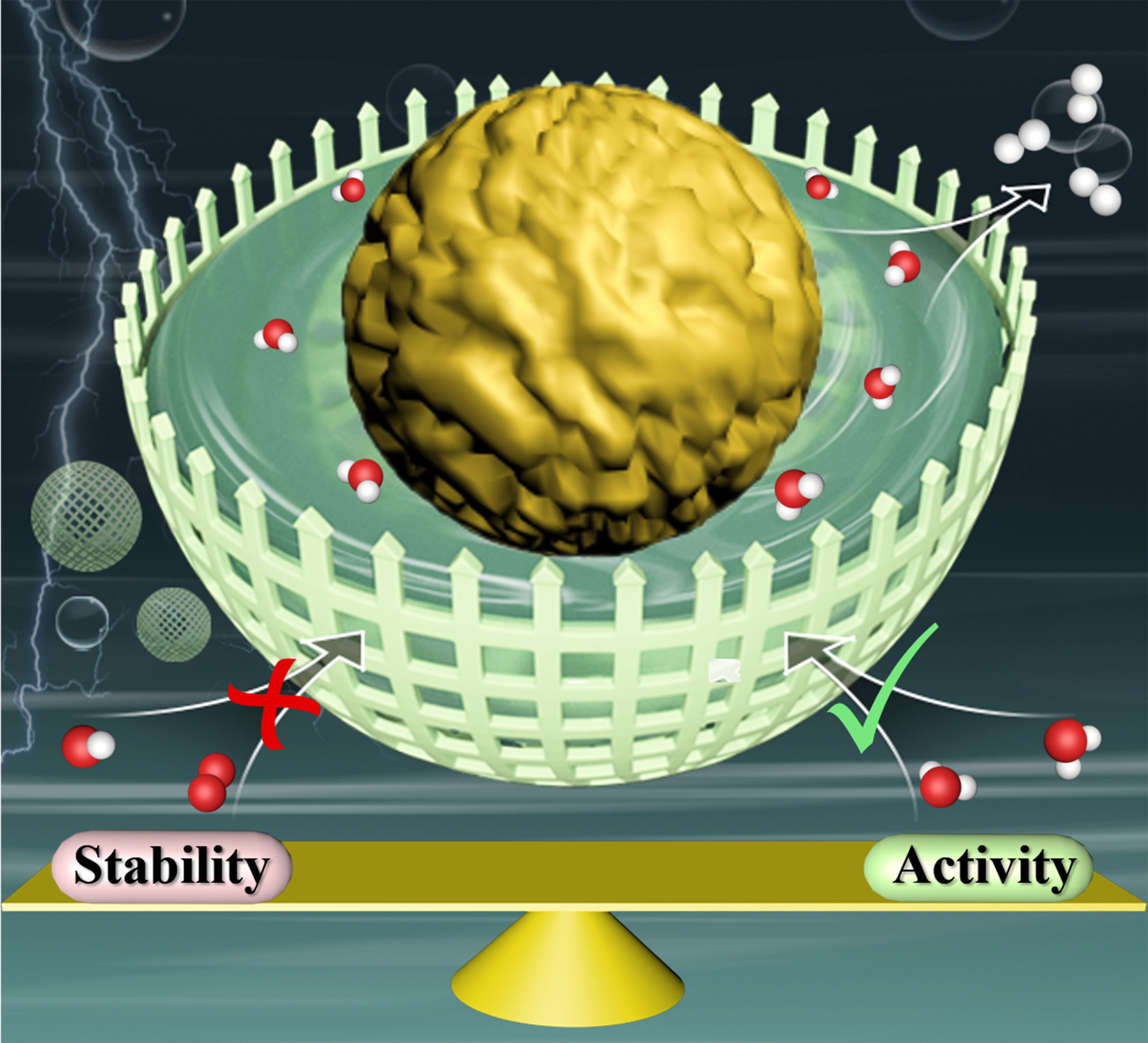 開發(fā)高穩(wěn)定性、高活性以及低成本的電催化劑是催化科學(xué)技術(shù)領(lǐng)域的永恒追求。近年來,非貴金屬催化劑已經(jīng)成為了催化領(lǐng)域的研究熱點。然而,這類催化劑普遍存在長期穩(wěn)定性和高催化活性之間的權(quán)衡問題,這是因為優(yōu)化后的高催化活性位點往往更易受到復(fù)雜催化反應(yīng)環(huán)境因素的影響。例如氧氣、水蒸氣、臭氧、酸性/堿性反應(yīng)介質(zhì)等因素都可能通過化學(xué)作用毒化催化活性位點,導(dǎo)致催化劑表面發(fā)生重構(gòu)并破壞其幾何/電子結(jié)構(gòu),造成催化劑失活。因此,尋找一種有效的策略來打破非貴金屬催化劑所面臨的活性-穩(wěn)定性權(quán)衡問題是一個巨大的挑戰(zhàn)。