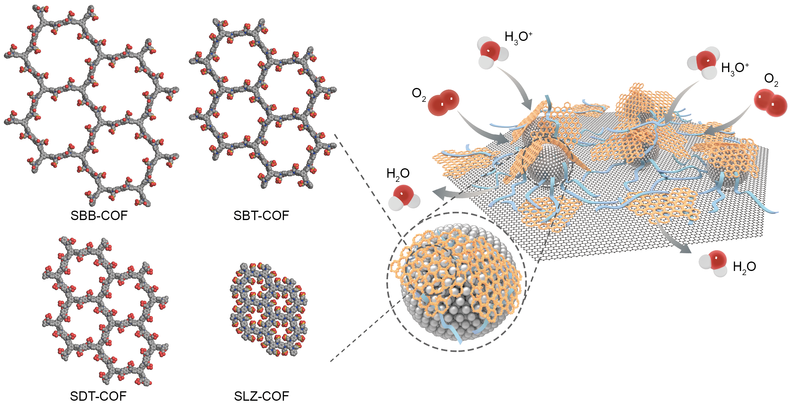 圖1 燃料電池中Pt/C@COF-Nafion催化層及其作用機理示意圖