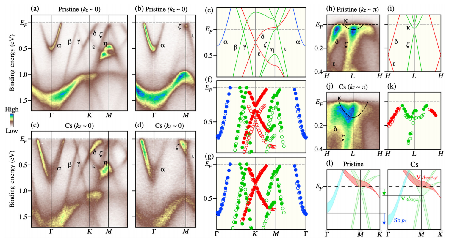 圖9 表面未經處理和經過Cs處理的CsV3Sb5樣品的電子能帶結構