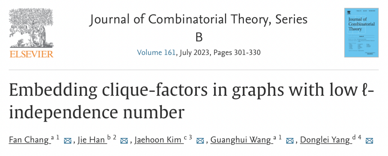 韓杰與山東大學的王光輝教授團隊和韓國科學技術院大學的JaehoonKim教授在最新的研究中決定了獨立數次線性圖中團因子存在性的最優度條件,并否定了前人提出的猜想。在另一研究中,韓杰與華中師范大學教師丁來浩、山東大學王光輝教授團隊研究了擬隨機超圖中退化F因子存在性的最優密度問題并得到了一系列成果。其中關于3一致超圖中