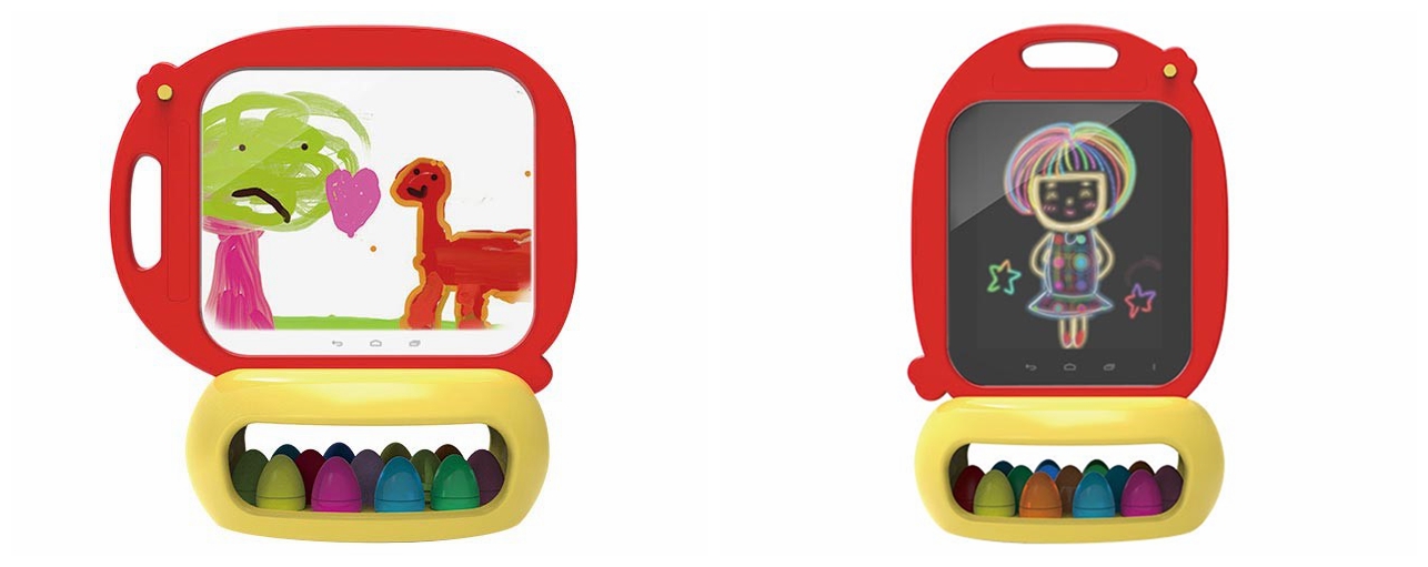 “Draw Pal”(繪畫伙伴)在使用功能設計上也有很多值得稱道的考慮,較好的滿足產品不同的使用功能需要。Draw Pal畫板分為縱向和橫向兩種擺放方式,底座上可設置磁性材料增強連接的穩定性;當畫板橫向插入底座時,可自動切換為充電模式,提升使用的方便性;畫板的雙向透明設計,旨在幫助兒童在涂鴉時可以看到彼此;畫筆還可以吸附在畫板的兩側,方便兩個使用者共同完成畫作。