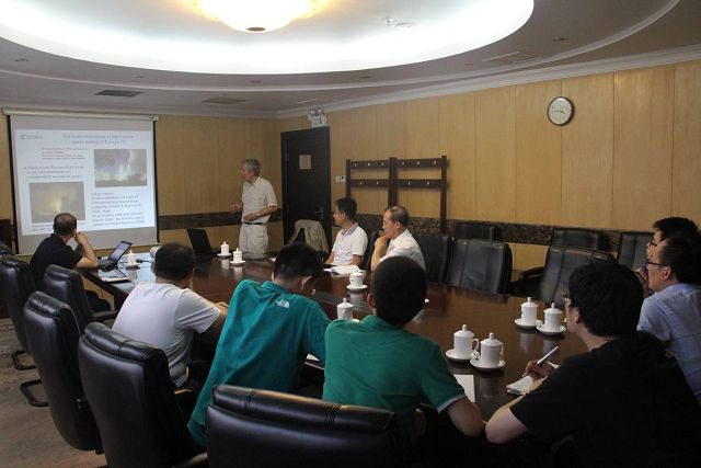 Bonneville教授首先結合自己參與多個歐空局深空探測項目的工作經驗,詳細介紹了歐空局(ESA)的組織關系和機構構成、歐空局已經實施的深空探測任務所取得的科學成果,并對正在計劃實施的未來任務進行了展望,提出了可能合作的方向和合作渠道。喬棟副教授介紹了北京理工大學宇航學院在深空探測領域的研究方向與成果,以及與航天東方紅衛星有限公司聯合提出的小行星探測計劃。針對上述計劃,雙方就科學目標與任務規劃、科學儀器與有效載荷等方面的合作內容與途徑進行了深入的探討,并在科學目標和高性能成像與光譜分析科學儀器的設計與研制等方面達成了合作意向。雙方同意盡快啟動具體合作計劃,推進中國的小行星探測計劃任務的實施。