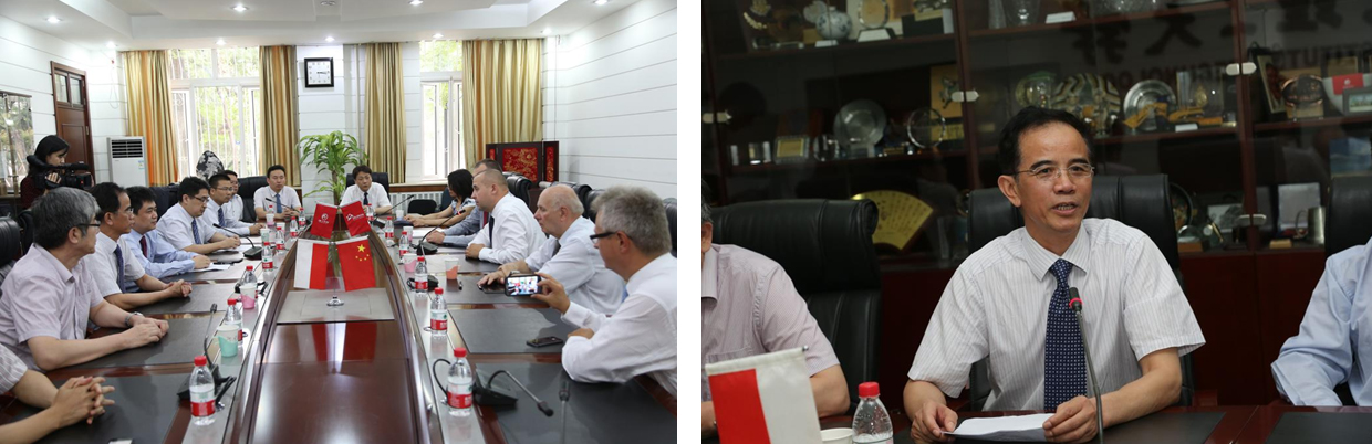 2014年8月30日下午,北京理工大學、北京理工華創電動車技術有限公司、上海電巴新能源科技有限公司、鄭州宇通客車、中信國安盟固利動力科技有限公司、北京理工新能等單位與波蘭TAURON集團、華沙理工大學在京成功簽訂了中波e-Bus項目樣車協議。北京理工大學副校長、電動車輛國家工程實驗室主任孫逢春教授,華沙理工大學教授Mr.Antoni Szumanowski,波蘭TAURON 配電公司副總裁Mr.Marek Kleszczewski,電動車國家工程實驗室副主任、北京理工華創電動車技術有限公司董事長林程教授,鄭州宇通客車技術副總監李高鵬,北京理工新能電動車技術研究中心有限公司總經理周輝博士,上海(北京)電巴新能源科技有限公司總經理楊燁,中信國安盟固利動力科技有限公司總經理張曦和營銷總監邱興昌等出席簽約儀式,簽約儀式由華沙理工大學常玉華博士主持。