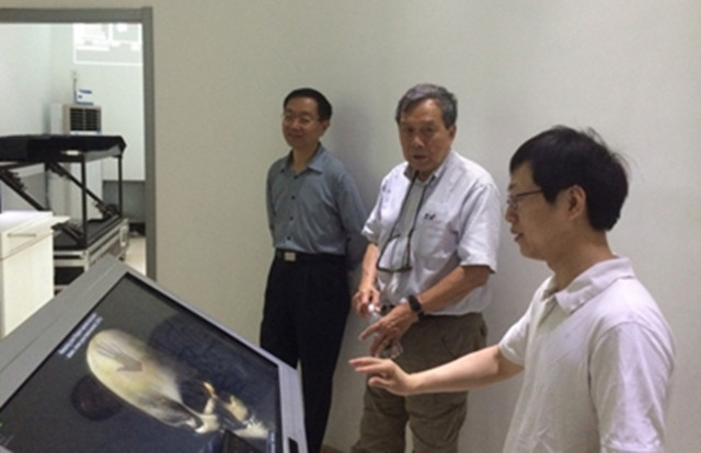26日上午,楊振寰教授先后參觀了參觀趙維謙教授實驗室與王涌天教授實驗室,聽取了趙維謙教授、王涌天教授介紹實驗室情況與項目進展情況。參觀過程中,楊振寰教授體驗了實驗室自主研發的頭盔顯示器、手術導航儀以及紅外智能交互顯示器等設備,并且給予實驗室工作高度評價。