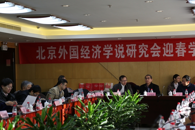 。。2016年1月9日,由北京理工大學人文與社會科學學院、北京外國經濟學說研究會聯合主辦的北京外國經濟學說研究會迎春學術研討會在我校國際教育交流中心召開。來自清華大學、北京大學、中國人民大學、復旦大學、北京師范大學、中國社會科學院、北京社科聯等國內知名高校與科研機構以及《經濟學動態》、《中國社會科學》、《光明日報》等學術期刊、出版單位及新聞媒體的70名代表共同探討在全面深化改革和制定“十三五”社會經濟發展規劃之際,我國供給側改革和經濟新常態的相關話題。