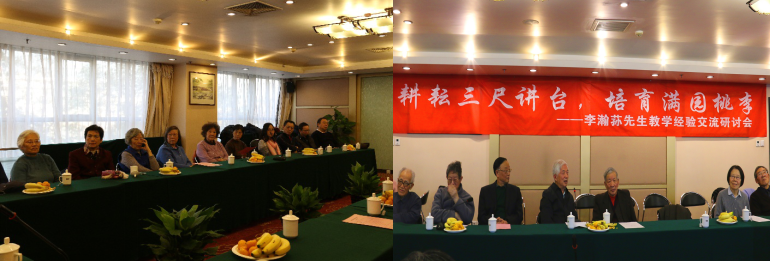 時隔多年再度相聚,各位老師心情激動,在場歡聲笑語,其樂融融。李瀚蓀教授多年來盡心竭慮,無怨無悔,將自己的全部智慧與心血奉獻給了教學研究事業,培育了一代又一代的莘莘學子?!案湃咧v臺,培育滿園桃李”這是對李教授教學工作的最好總結,信息與電子學院在此祝愿李瀚蓀教授以及各位老先生福如東海,壽比南山,常回學??纯?!