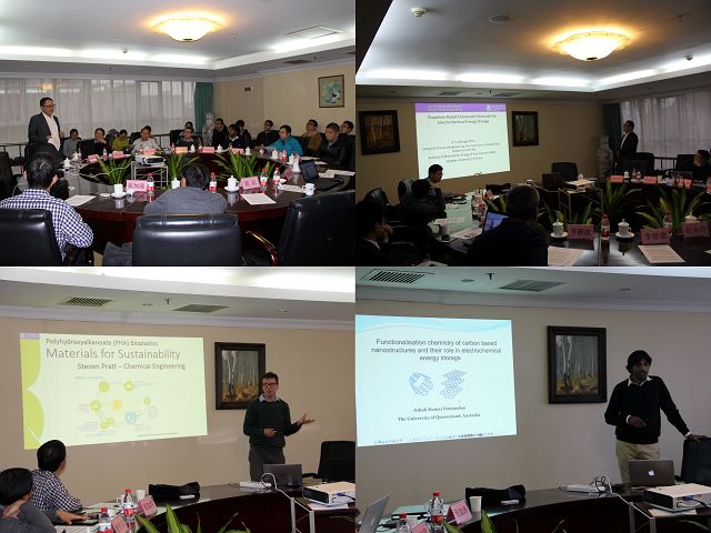 為促進“一流材料學科”的建設和有效推進材料學科的國際化評估工作,北理工-昆士蘭能源材料聯合研究中心于2016年11月21日至22日,在北京理工大學國際交流大廈3樓會議室舉辦了“新能源材料探索與研究雙邊論壇”。材料學院結構可控先進功能材料與綠色應用北京市重點實驗室的研究團隊與澳大利亞昆士蘭大學的納米研究中心、生物工程與納米技術研究所及化工系的幾位教授及研究團隊在科學研究、學生培養等方面進行了廣泛的交流研討。