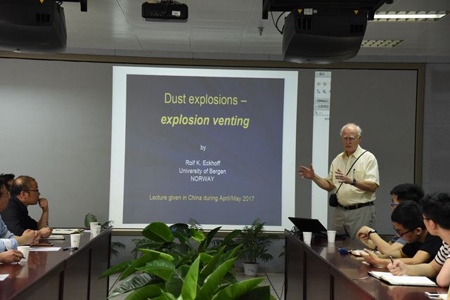 2017年5月2日-4日,應北京理工大學爆炸科學與技術國家重點實驗室的邀請,挪威卑爾根大學Rolf K. Eckhoff院士到北理工進行學術訪問,并分別做了題為“Ignition of Dust Clouds”與“Relief Venting of Dust Explosion”的精彩學術報告。報告會由爆炸科學與技術國家重點實驗室王仲琦副主任主持。
