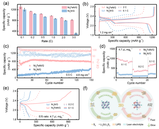 圖3. Ni3FeN催化作用下Li–S電池的電化學性能