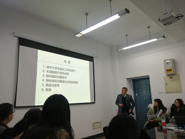 應北京理工大學化學與化工學院李春教授邀請,清華大學生化工程系劉錚教授于2019年1月7日下午來到北京理工大學化學與化工學院,為北理工師生帶來題為 “納米固定化酶技術研究進展” 的學術報告。李春教授主持了學術報告會,化學與化工學院教師及研究生六十余人參加了報告會。
