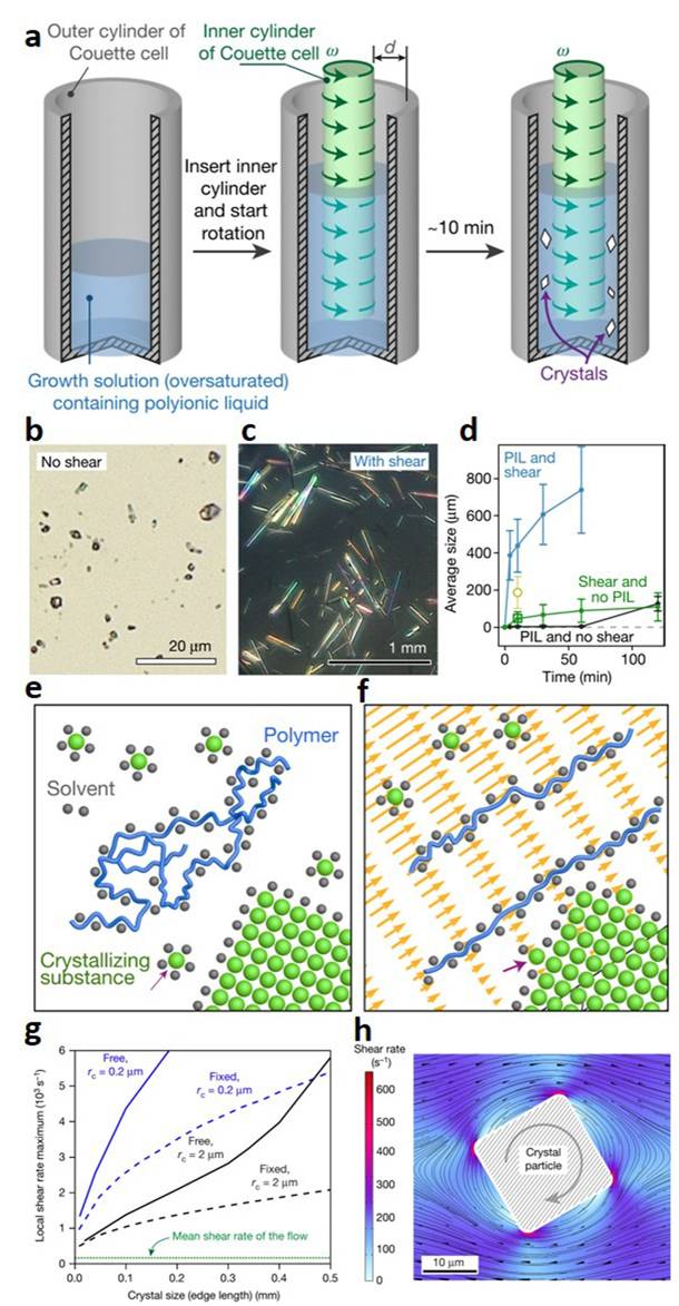 該工作打破了人們對傳統結晶理論的認識,提出了利用剪切驅動的封閉系統恒溫結晶方法,為簡單、高效合成高質量的單晶提供了新思路。該方法是對當前晶體生長技術的一個重要補充,有望大大降低材料加工和制藥業中晶體生長成本。