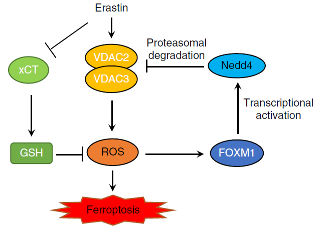 Yongfei Yang, Meiying Luo, Kexin Zhang, Jun Zhang, Tongtong Gao, Douglas O’ Connell, Fengping Yao, Changwen Mu, Bingyu Cai, Yuxue Shang & Wei Chen. Nedd4 ubiquitylates VDAC2/3 to suppress erastin-induced ferroptosis in melanoma. Nature Communications, 11, 433 (2020).
