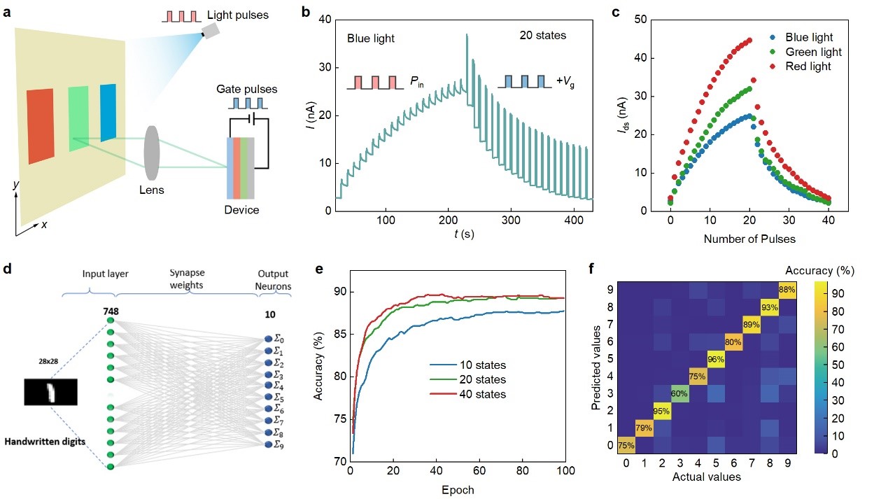 圖4. 范德華光譜儀神經形態計算功能展示